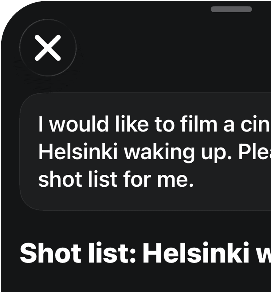 Plan before you film. Use Helmi to create shot lists, scripts, and structure.