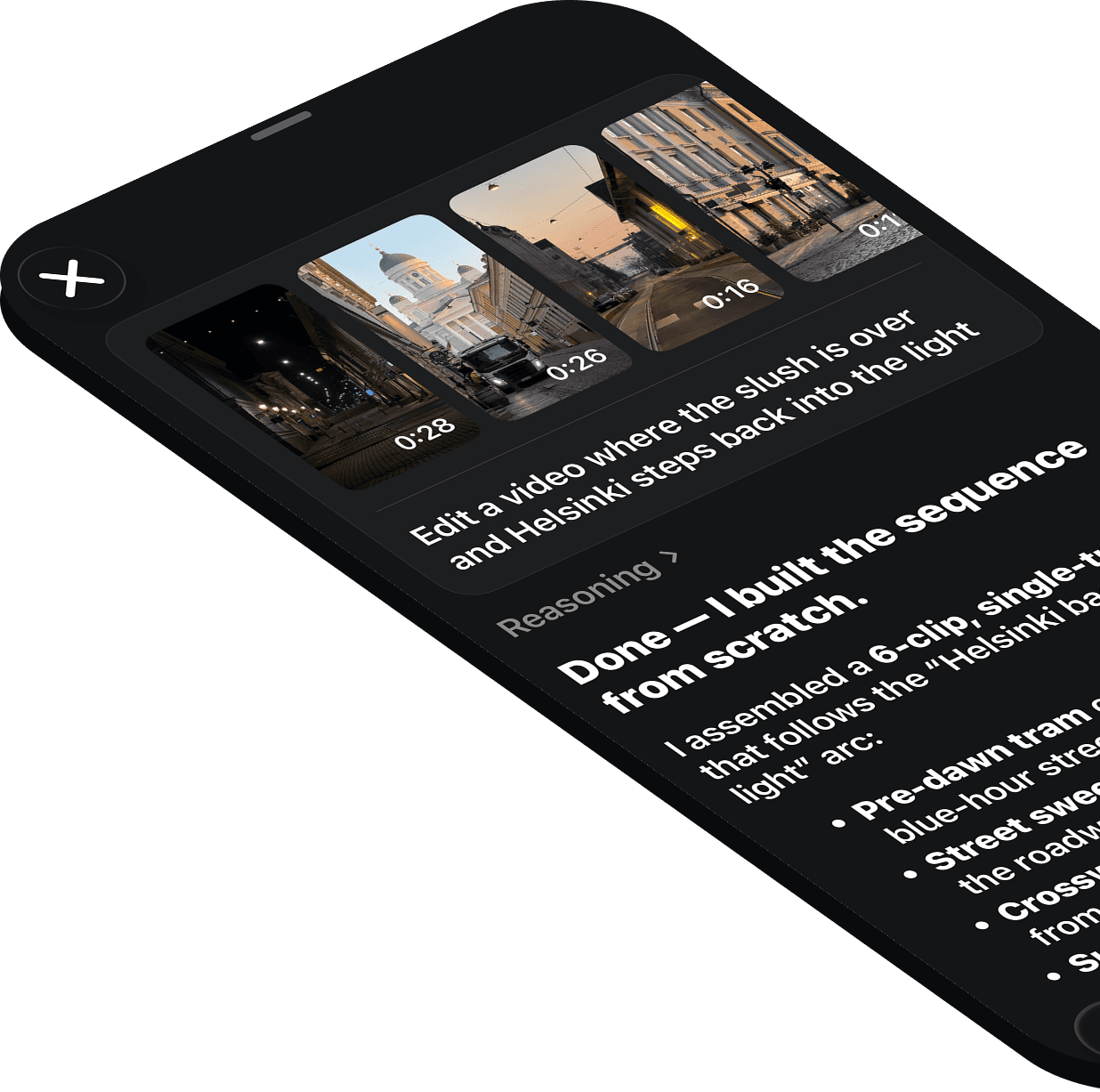 Edit with simple prompts. Describe the result you want and Helmi builds the cut.